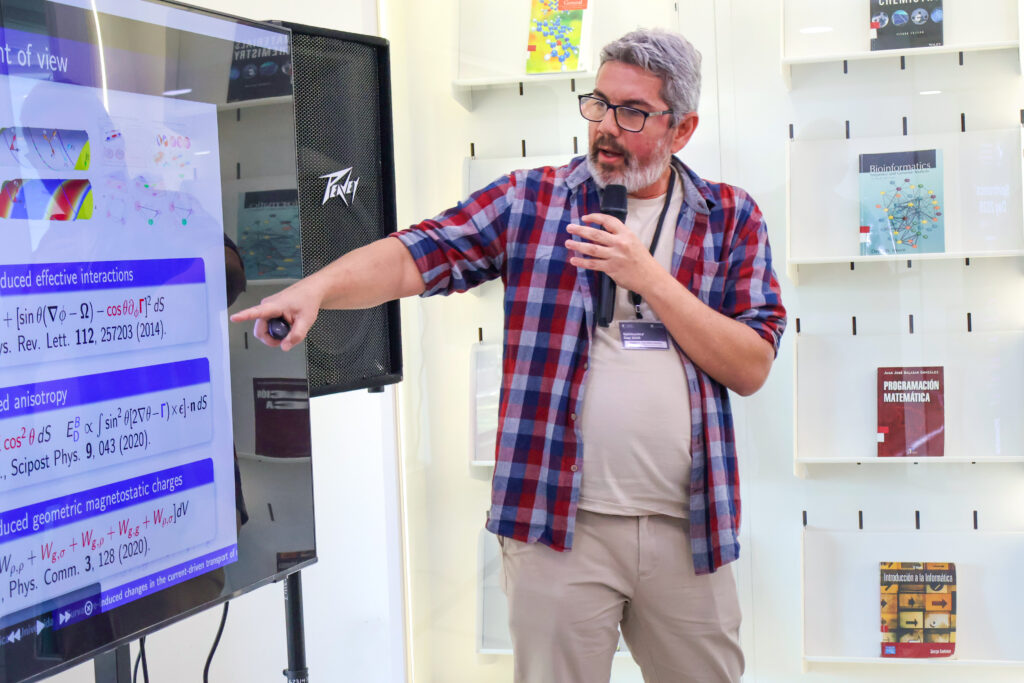 Uno de los espacios más activos fue la sesión de póster, que reunió 30 trabajos enfocados en fundamentos de espintrónica y materiales magnéticos, comportamientos cuánticos de la materia, sistemas nanoestructurados y sus aplicaciones, además de dinámica no lineal y sistemas complejos. Estas presentaciones, realizadas principalmente por estudiantes e investigadores e investigadoras en formación, promovieron el intercambio de ideas y la retroalimentación científica.